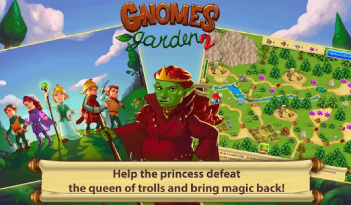 Gnomes Garden ஒரு உற்சாகமான கதைக்களம், வண்ணமயமான சித்திரக் கதைகள் மற்றும் கவர்ச்சியான கதாபாத்திரங்களுடன் உங்களை ஒரு அசாதாரண உலகத்திற்கு அழைத்துச் செல்கிறது. மரங்கள் நிறைந்த காடுகள், பனி படர்ந்த மலைகள், சதுப்பு நிலங்கள் மற்றும் பாலைவனங்கள் என நான்கு தனித்துவமான இடங்களில் 40 க்கும் மேற்பட்ட நிலைகள் வழியாக பயணம் செய்யுங்கள். வேலை வேகத்தை அதிகரிக்க, நேரத்தை நிறுத்த அல்லது வேகமாக ஓட போன்ற பயனுள்ள போனஸ்களைப் பயன்படுத்தி சவால்களை எளிதாக கடந்து செல்லுங்கள். 20 மணிநேரத்திற்கும் மேலான கண்கவர் விளையாட்டும், இனிமையான கருப்பொருள் இசையும் உங்களுக்கு ஒரு மறக்க முடியாத அனுபவத்தை வழங்கும். துணிச்சலான இளவரசியுடன் இணைந்து, ட்ரால் ராணியை தோற்கடித்து, இந்த மாய உலகிற்கு அதன் இழந்த மந்திரத்தை மீட்டெடுத்து, வண்ணமயமான வெற்றிகளை குவிக்க Gnomes Garden உங்களை அழைக்கிறது!