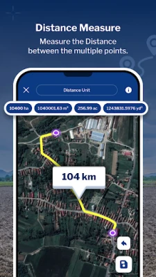 உங்கள் நிலத்தின் பரப்பளவை கைமுறையாகவோ அல்லது ஜி.பி.எஸ் உதவியுடனோ மிகத் துல்லியமாக அளவிடலாம். வளைந்த நிலப்பரப்புகளையும் எளிதாகக் கையாளும் திறன் கொண்டது. அதேபோல், ஒரு புள்ளியில் இருந்து மற்றொரு புள்ளிக்கு உள்ள தூரத்தையும், விரும்பிய அலகுகளில் துல்லியமாகக் கணக்கிடலாம். அளந்த பகுதிகள் அல்லது தூரங்களை விவசாயம், குடியிருப்பு, வணிகம் போன்ற வகைகளாகப் பிரித்துச் சேமித்து வைக்க முடியும். ஒவ்வொரு பதிவுடனும் பெயர், விளக்கம், குழு வகைப்பாடு, புகைப்படங்கள் மற்றும் குறிப்புகளை இணைக்கும் வசதி உள்ளது. முக்கியமான இடங்களைக் குறிக்க 'Pick Location' அம்சமும், களத்தில் திசையைத் துல்லியமாக அறிய உள்ளமைக்கப்பட்ட திசைகாட்டி (Compass) அம்சமும் உங்கள் பணிகளை மேலும் எளிதாக்கும். சேமிக்கப்பட்ட அனைத்து தகவல்களையும் ஒரே இடத்தில் அணுகவும், குழுக்களாகப் பிரித்து நிர்வகிக்கவும் முடியும்.