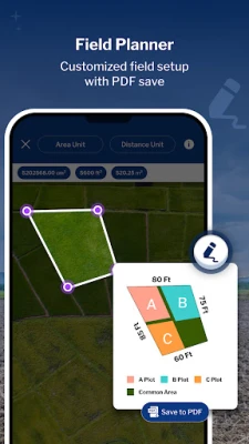 'Field Planner' அம்சம் மூலம் உங்கள் நிலத்திற்கான விரிவான திட்டங்களை வரைந்து, திருத்தி, பகிரலாம். இது விவசாயிகள் பயிர்த் திட்டமிடலுக்கும், நில அளவையர்கள் புதிய திட்ட அமைப்புகளை உருவாக்கவும், நில உரிமையாளர்கள் தங்கள் சொத்துக்களை சிறப்பாக காட்சிப்படுத்தவும் ஏற்றது. வரைபடத்தில் எல்லைகளை வரையறுத்து, பல்வேறு ஸ்டிக்கர்கள் அல்லது கேலரியில் உள்ள படங்களைச் சேர்த்து உங்கள் திட்டத்தை மேலும் விளக்கமாக உருவாக்கலாம். பின்னர், இந்த திட்டத்தை தொழில்முறை PDF கோப்பாக ஏற்றுமதி செய்து, குழு உறுப்பினர்களுடன் எளிதாகப் பகிரலாம். மேலும், நிலம் மற்றும் பரப்பளவுக்கான பல்வேறு அலகுகளுக்கு இடையே (ஏக்கர், ஹெக்டேர், சதுர அடி, சதுர மீட்டர்) உடனடியாக மாற்ற உதவும் 'Unit Converter' அம்சம், விரைவான கணக்கீடுகளுக்கு மிகவும் பயனுள்ளதாக இருக்கும். இந்த செயலியைப் பயன்படுத்தி உங்கள் நில நிர்வாகப் பணிகளை எளிமையாகவும், துல்லியமாகவும், திறமையாகவும் மாற்றிக்கொள்ளுங்கள்.