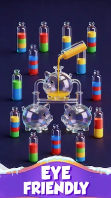 'Water Match' விளையாட்டின் ஒவ்வொரு கணமும் உங்களை ஈர்த்து வைக்கும் வகையில் வடிவமைக்கப்பட்டுள்ளது. முடிவில்லா நீர் வரிசைப்படுத்தல் நிலைகள், குறிப்பிட்ட கால சவால்கள், மற்றும் மறைக்கப்பட்ட வண்ணங்கள் அல்லது மூடிய பாட்டில்கள் போன்ற புதுமையான திருப்பங்கள் என உள்ளடக்கம் எப்போதும் புத்துணர்ச்சியுடன் இருக்கும். ஆரம்ப நிலைகள் எளிமையாக இருந்தாலும், படிப்படியாக அதிகரித்துக்கொண்டே செல்லும் சவாலான புதிர்கள், மறைந்திருக்கும் வண்ணங்களுடன் கூடிய புரோ நிலைகள் வரை, உங்கள் மூளைக்கு சலிப்பூட்டாத பயிற்சி அளிக்கிறது. எட்டு விதமான துடிப்பான நீர் வண்ணங்கள், நேர்த்தியான பாட்டில் வடிவமைப்புகள், மற்றும் மென்மையான அசைவுகள் (நீர் ஊற்றுவது, அலைவது) ஆகியவை ஒவ்வொரு தட்டலையும் ஒரு காட்சி விருந்தாக மாற்றுகிறது. தெளிவான கண்ணாடி ஒலி, இனிமையான நீர் ஊற்றும் சத்தம், மற்றும் மனதை அமைதிப்படுத்தும் இசை ஆகியவை ஒருங்கிணைந்து ஒரு ஆழமான ஒலி அனுபவத்தை வழங்குகின்றன. எந்த நேரத்திலும், எங்கும் இணைய இணைப்பு இல்லாமல் விளையாடும் வசதி, உங்கள் பிஸியான அட்டவணைக்கு ஏற்ப விளையாட்டை நிறுத்தி தொடர அனுமதிக்கிறது.